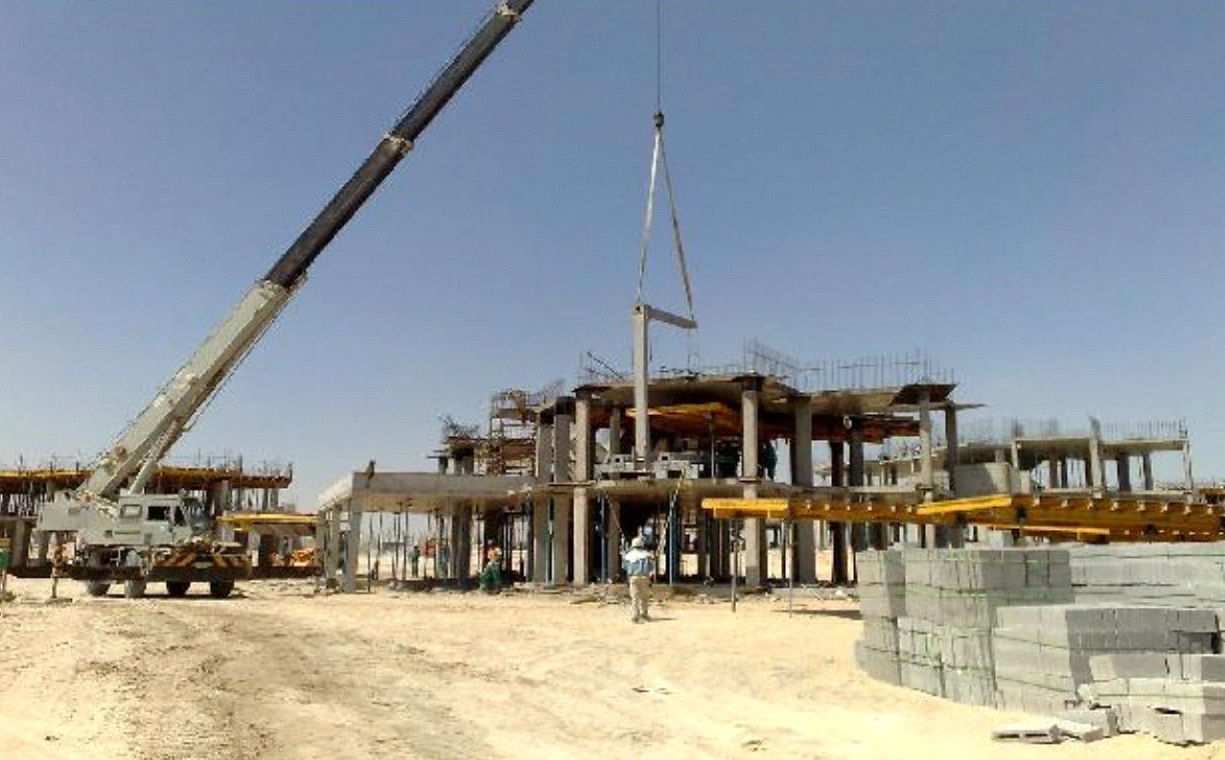 As fixed to the site’s crane, the table transport fork is used to lift the tables to fly over them to the next floor level easily & quickly.